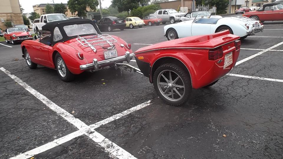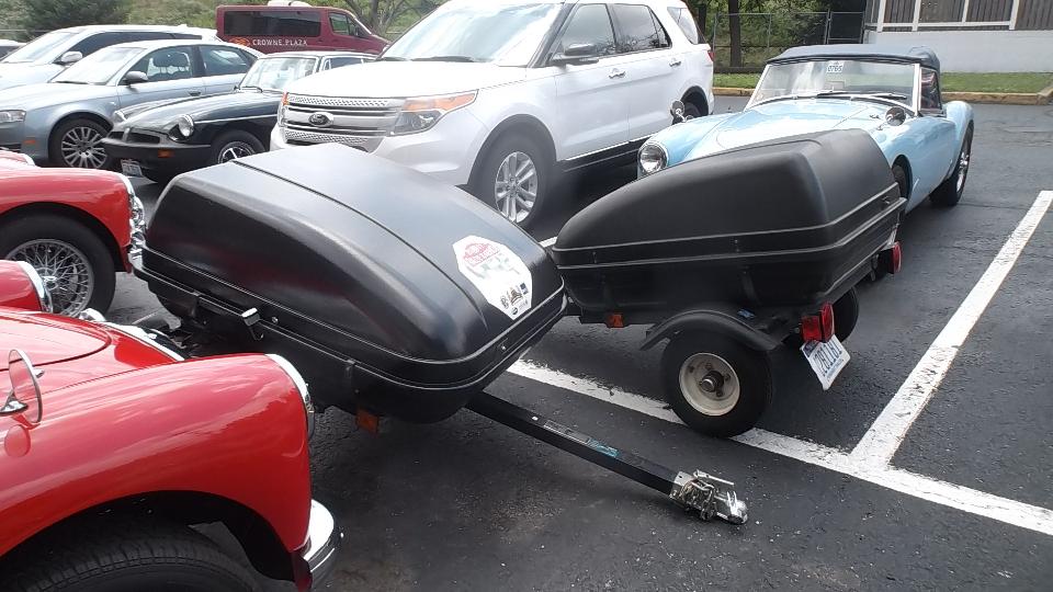 After late night social, midnight email, short sleep, then early morning back to the main hotel. As usual, lots of interesting stuff in the car park. The topper canopy is a way to keep the MGA "less leaky in a heavy rain. There was the rare MGA 1600-MK-II "Deluxe, and an MGB V8 conversion with opera top and a serious looking trailer hitch (wonder what that tows).
