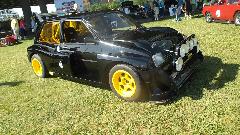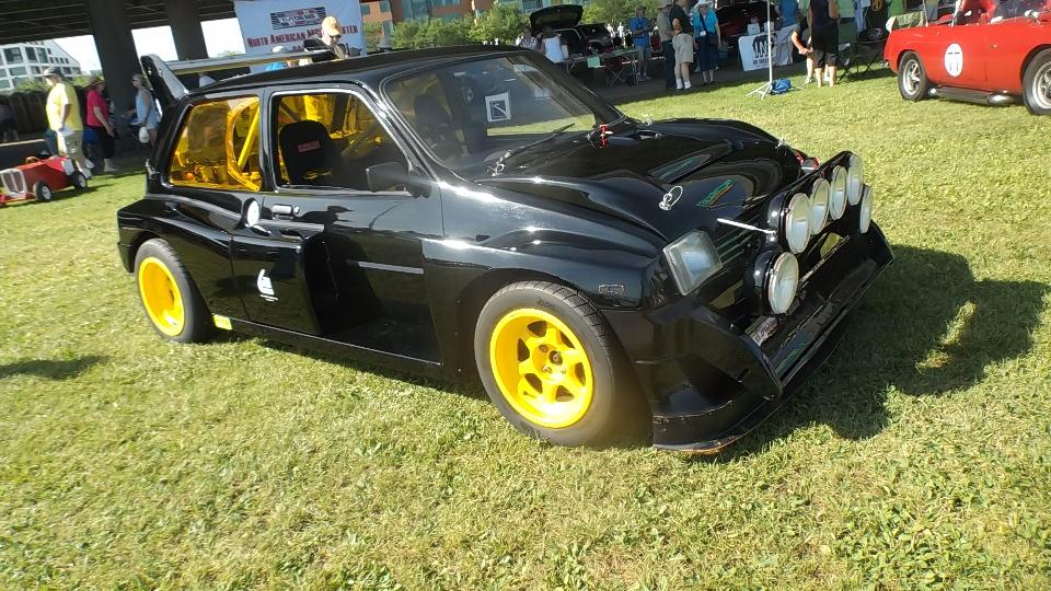Next up was the MG 6R4, a spin-off of the Austin Meto (with very few parts in common), produced in 1985 only as the "super mini rally car". Think mid-engine 3-liter V6 with twin overhead cams and 4 valves per cylinder (24 valves) developing 410 bhp. Also all wheel drive with three limited slip differentials. How fast can you say R-A-L-L-Y?