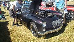 In between tech sessions, an MG TD in distress. Dead battery before arrival, jumper start to get it into the car park, battery charger for partial charge to get it going again. Problem here was a control box that had drifted out of adjustment leading to low voltage which would not keep up with power demand when running. Handy volt meter and a small adjustment for the regulator relay, and it's all smiles.