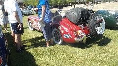 In the hotel lobby an MG TC on display in racing form with Brooklands windscreens. Back in the car park, first spotting of a small trailer, and there will be more of these as well.