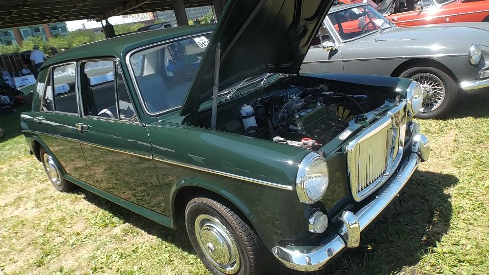 There were plenty of MG Midgets (the "modern Midget"), but only one venerable little MG 1100 sport sedan. There were quite a number of vendors offering regalia items, a few with car parts, and one with new electronic regulators to replace the original Lucas control box.
