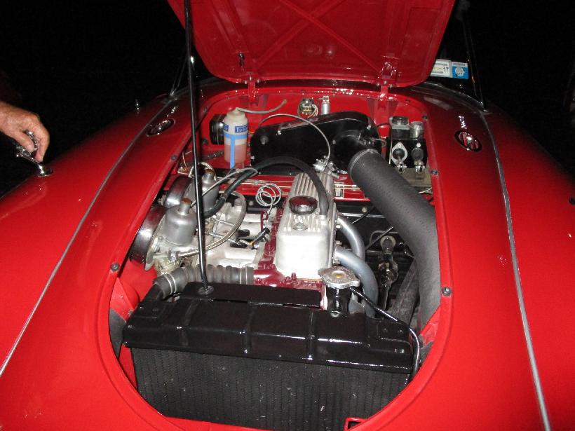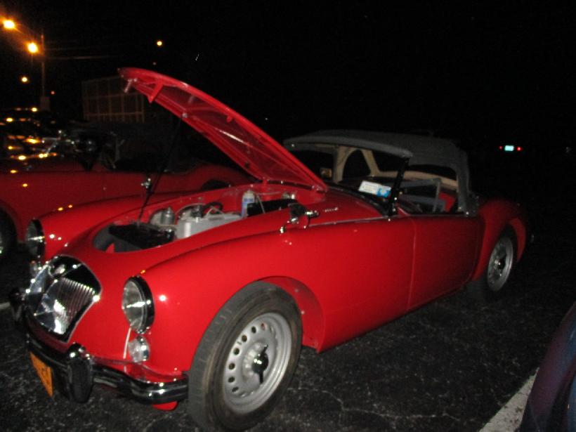 Back at the hotel for the (separate) MG register annual meeting and awards (5-7 pm), followed by the collective awards banquet, first place and special awards, and the guest speaker Dennis Gage (7-10 pm). Nearing end of festivities, there were the typical midnight tire kicking tech sessions in the car park. This is an MGA 1600-MK-II "Deluxe" that I have touched a few times before. First time was in 1989, getting it out of an old workshop in Chicago as it was changing owners. Then again in early 2014, dragging it out of long term storage to get some restoration work started. A bit later it changed to another new owner, now restored.