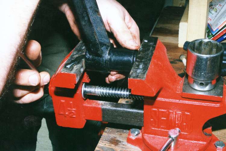 Final positioning of the new bushing. Large tube socket to fit over the bushing allows the bushing to extend past the tube.