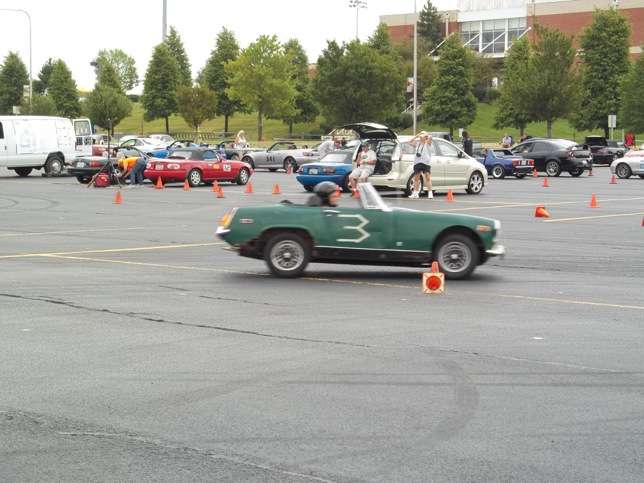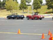 I started with a time of 1:08 and some change as had been trying to best raj in the first half. With raj gone, and my time dropping below raj's time I set my sights on Alex's very fast time of around 1:02.6 and managed to get my time down to 1:01.957. Alexes time was helped by his wise decision to unbolt his front bumper and reduce his cars weight by around 90lbs! After getting my second set of runs in, it began to rain, and I hoped that it would rain hard enough to assure me victory over the 1500. However, the rain let up and Alex managed a very fast time of 100.338. None of us took home any ribbons or trophy mugs since we were up against Honda Civics, Cheys, Toyotas, etc. Next time we really must get 5 cars there so we can race in an MG class.