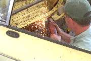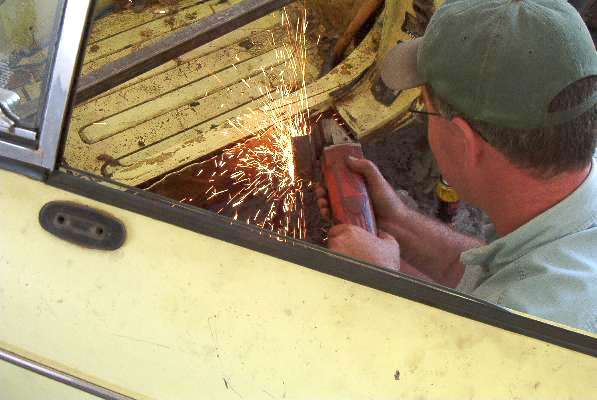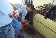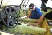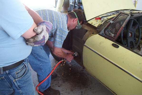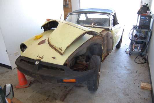 The 1977 MGB was donated by Jim Evans. There was some rust in the lower fenders and outer sills. Inner sills and floor pans are generally solid. The engine is complete with all original emissions control parts, although the engine and gearbox were out of the car at time of delivery. The suspension needs new rubber or poly bushes, and it needs new pads and rotors to make sure the brakes are absolutely up to snuff. There's a little work to be done on most aspects of the car so there's something for most folks to learn about from working on this car. We will start by tackling the bodywork. Time to remove seats and carpeting to see how much work it needs in the sills. Watch for news updates in the monthly newsletters.