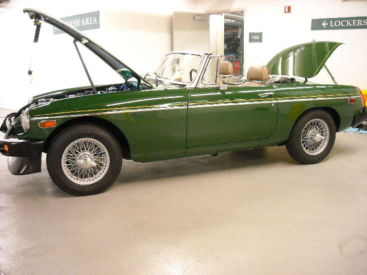 I am the original owner, the car is all original, unrestored and never been in the rain. It has a total of 28,450 miles on the odometer. I just changed the wheels from Rostyle wheels to Dunlop wire wheels (using Moss's Wire Wheel Conversion Kit) last month. -- Ray Kunst