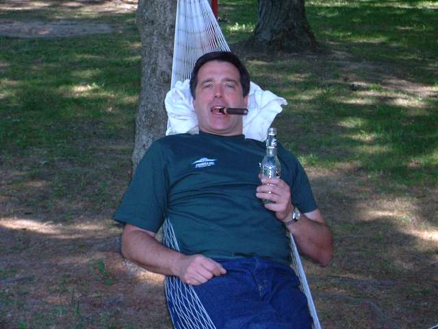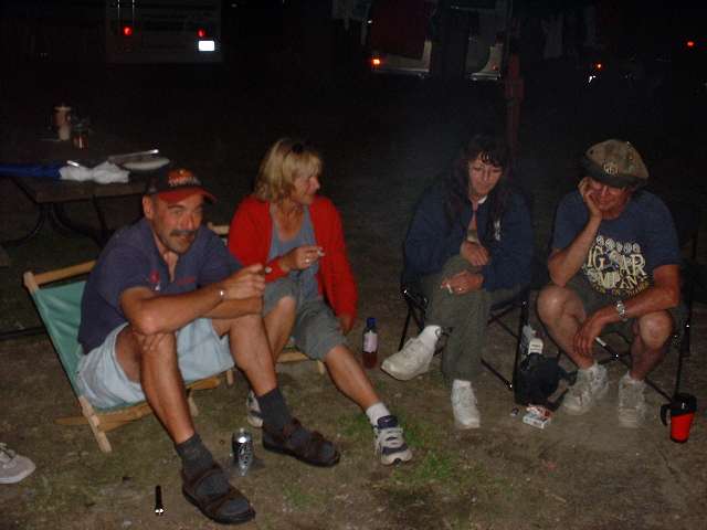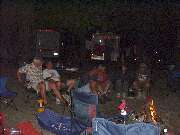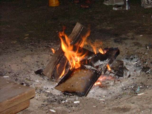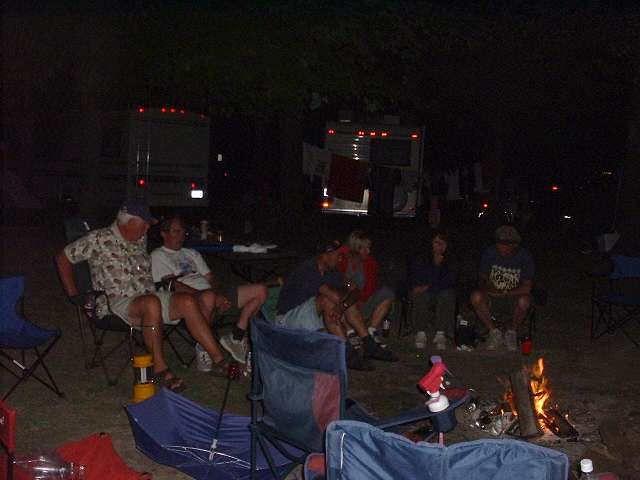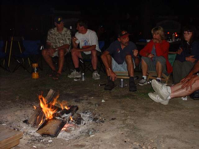 Saturday night barbeque and campfire follies among friends.
