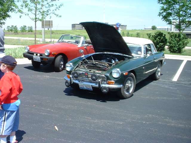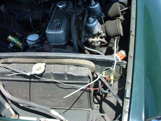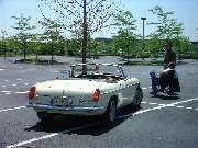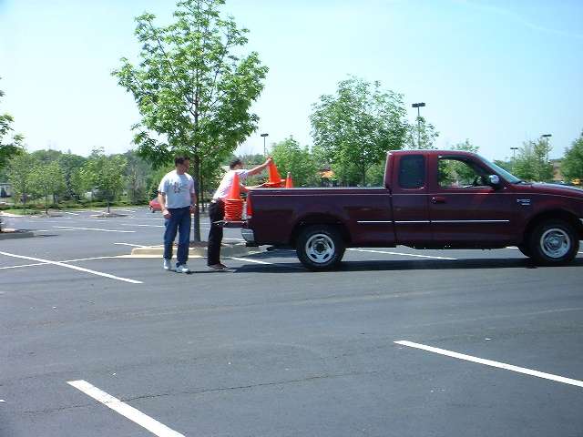 I'll bet we could have some fun here if we just put some cones in between the islands. .... Huh? Wadddaya mean it's all over? We didn't get any pictures. Maynard's camera battery died and lost the memory. But we did get to fix Wade's MGB after the fuel pump crapped out. Notice the modern substitute for baling wire is tie wraps, and you can hang a new fuel pump anywhere.