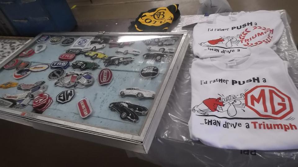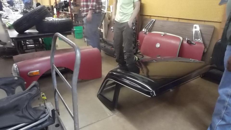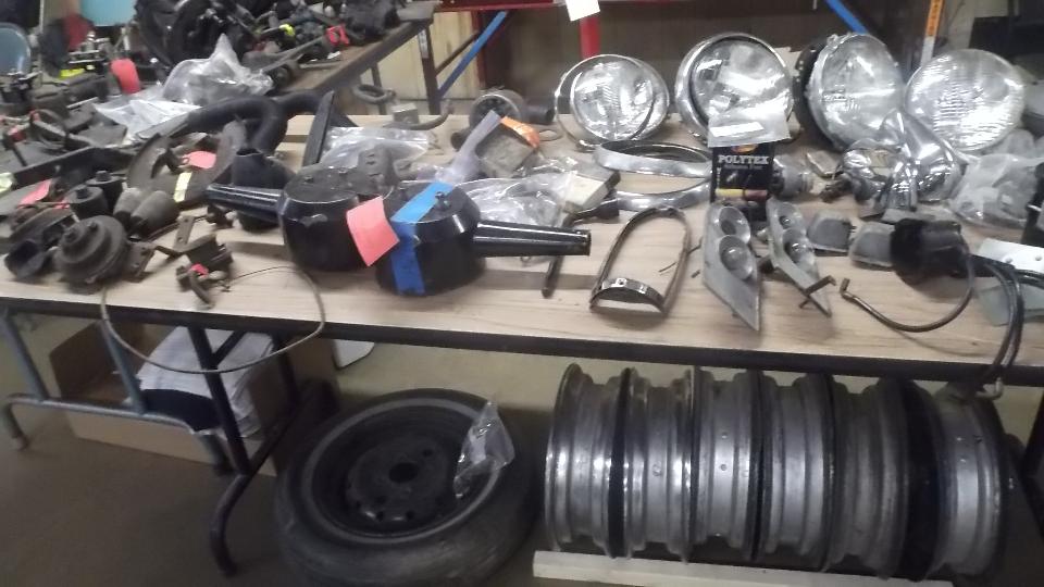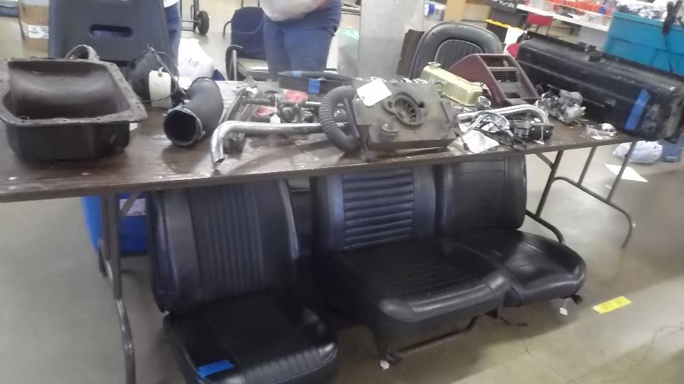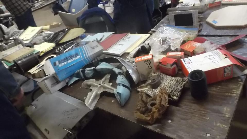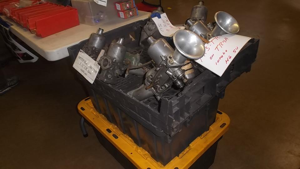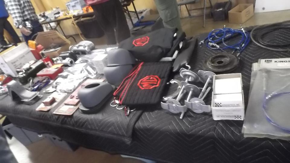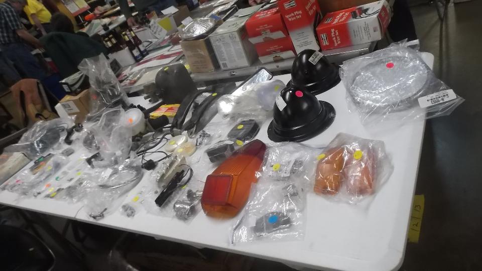 We hope you didn't spend too much time gawking at the cars outside, as we really came here to see what treasures might be available inside. This page shows some of the stuff found inside the Smaller Building. This was our 20th year doing this Swap Meet, and every time I post the pictures I see more interesting things I didn't remember seeing when I was walking through the area. The picture are almost as much fun as the first hand shoping exerience.