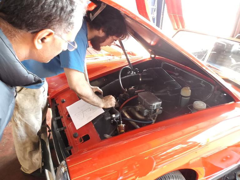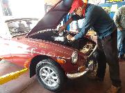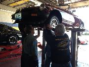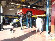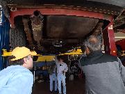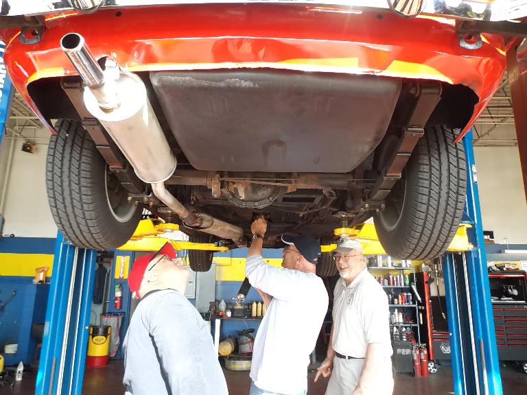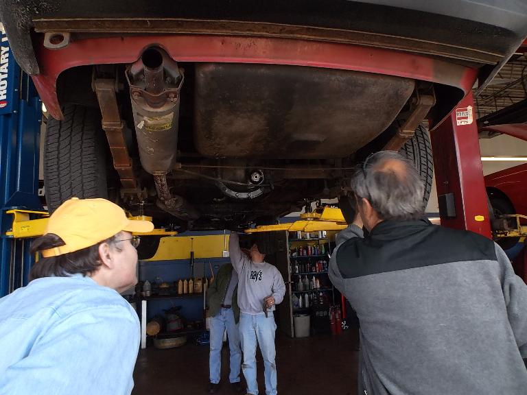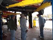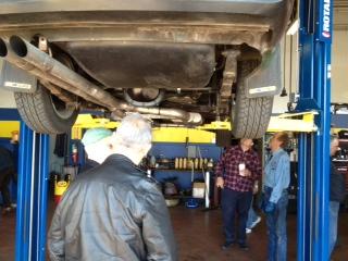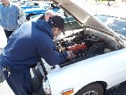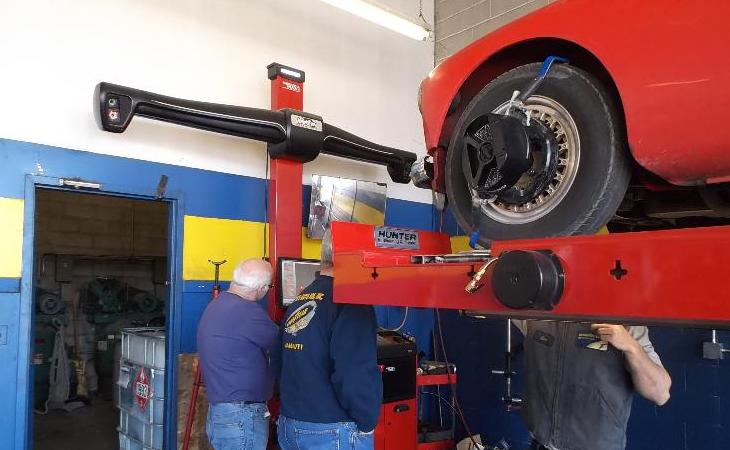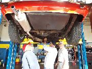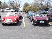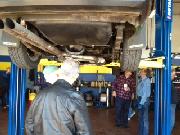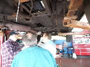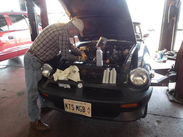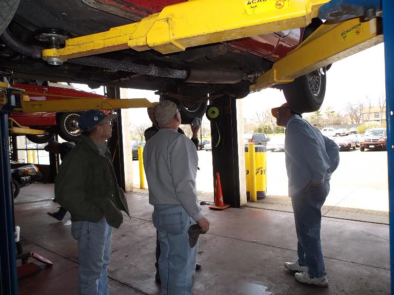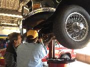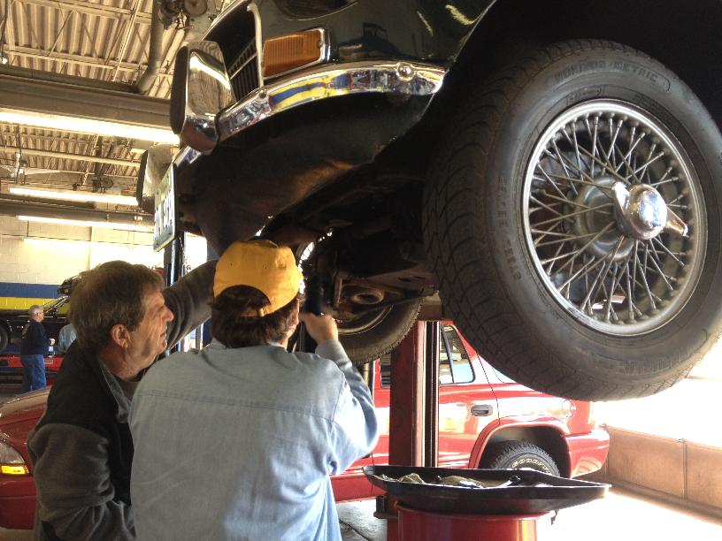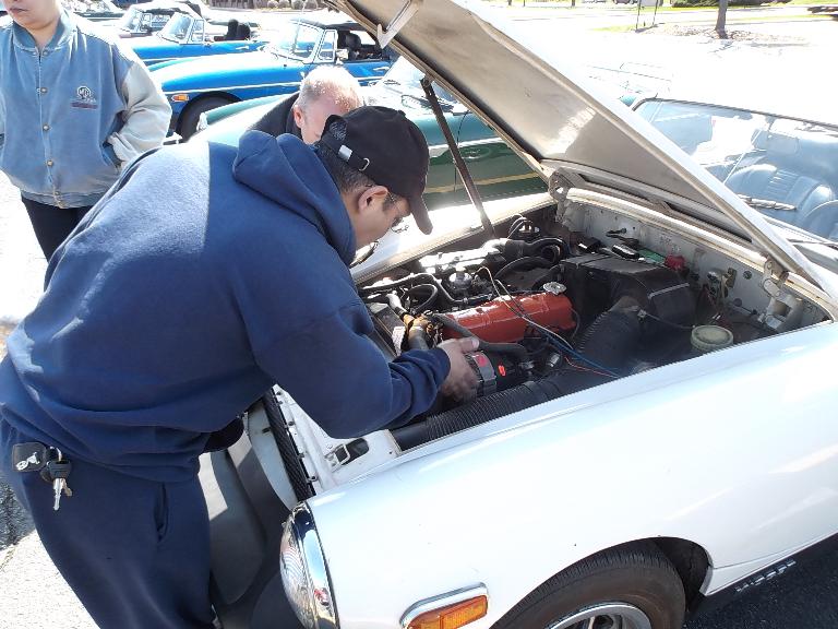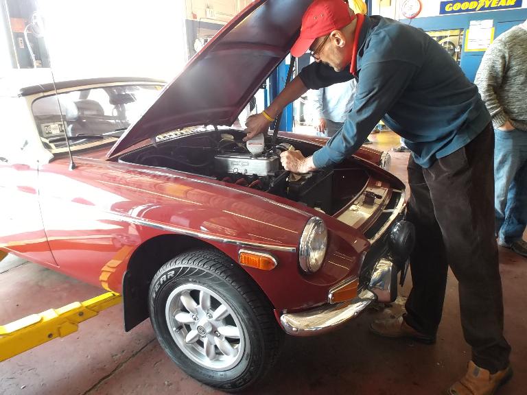 Nearly 30 MGs in attendance this year, perhaps a new record. Lots of oil changes and lube jobs, some tune-ups and brake adjustments, and a few minor repairs. Several cars got on the extra rack for front end alignment.