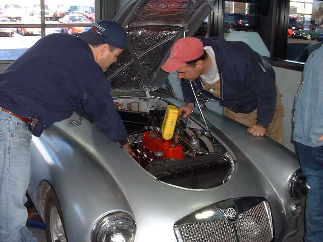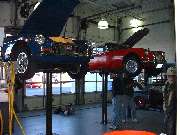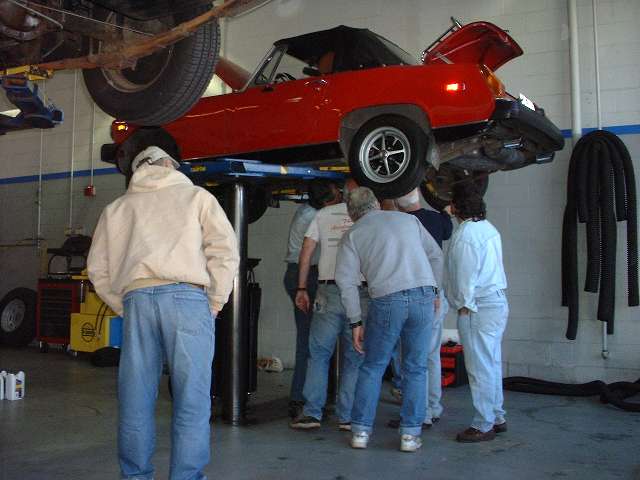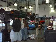 One newly installed sway bar needed a little adjustment of the lateral stops. Several cars were being treated to a little tune up along with scheduled services. And when there's a bit of a problem, there's no shortage of expert assistance.
