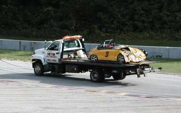 Two racecars involved in a crash in the second last race |
