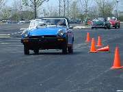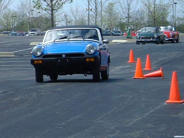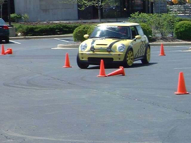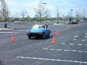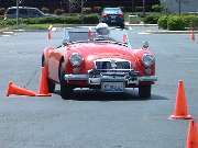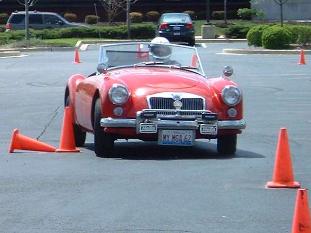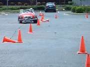 Bill Mennell taking out fast time - - Paul Urquhart taking out a cone