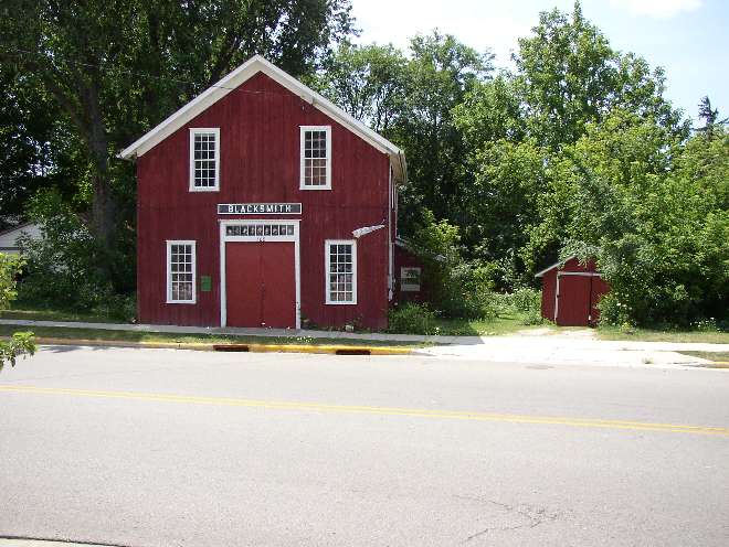 Bradford Town Hall - - Clausing Barn - - Blacksmith shop - - Larsen's Station