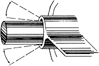 This is done by chucking the spindle in a hand drill and running it dry in the reamed bushes. Do not use any abrasive compound, the dark oxide that is formed will be enough. Add a drop of oil, and continue until the shaft rotates freely in the bushes. Re-fit the butterfly plates and drill the shaft for the adjusting lever, then drill the taper pin holes with the throttle completely closed. The drilling is best done from the underside on a drill press with the parts clamped in a jig. The hole must be drilled exactly on center or the shaft will be spoiled.