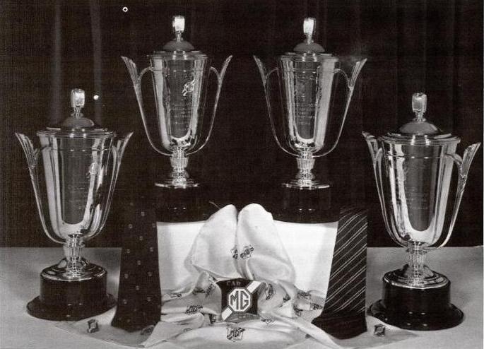 The only known photo of the four silver cups together appears in Mike Hawkes' book " The First 70 years of the MGCC", and although on the occasion of the Club’s 70th Anniversary we tried once again to get them all together, we were unfortunately let down by the Australians and the Oceana trophy did not arrive in England.